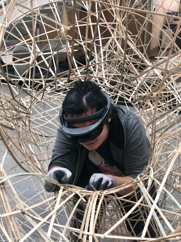 ARgan is a geometrically complex bamboo sculpture that relied on Mixed Reality (MR) for its joint creation by multiple sculptors and used the latest Augmented Reality (AR) technology to guide its manual fabrication.