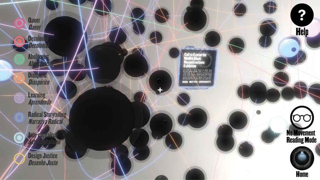 Dark Matter University (DMU) is a counter-institutional network of educators, researchers, and practitioners dedicated to anti-racist design education and outcomes, based in Turtle Island (United States and Canada) with a growing international membership. DMUxLisbon is both a living document and a real-time modeling of counter-institutionality within the Triennial through a collective “constellation” of content co-generated by the network’s many members. This constellation is both a showcasing of DMU’s work and methods, and a manifestation of our multiple, situated identities and narratives. Taken as a whole, we propose this real-time constellation is itself a new canon.